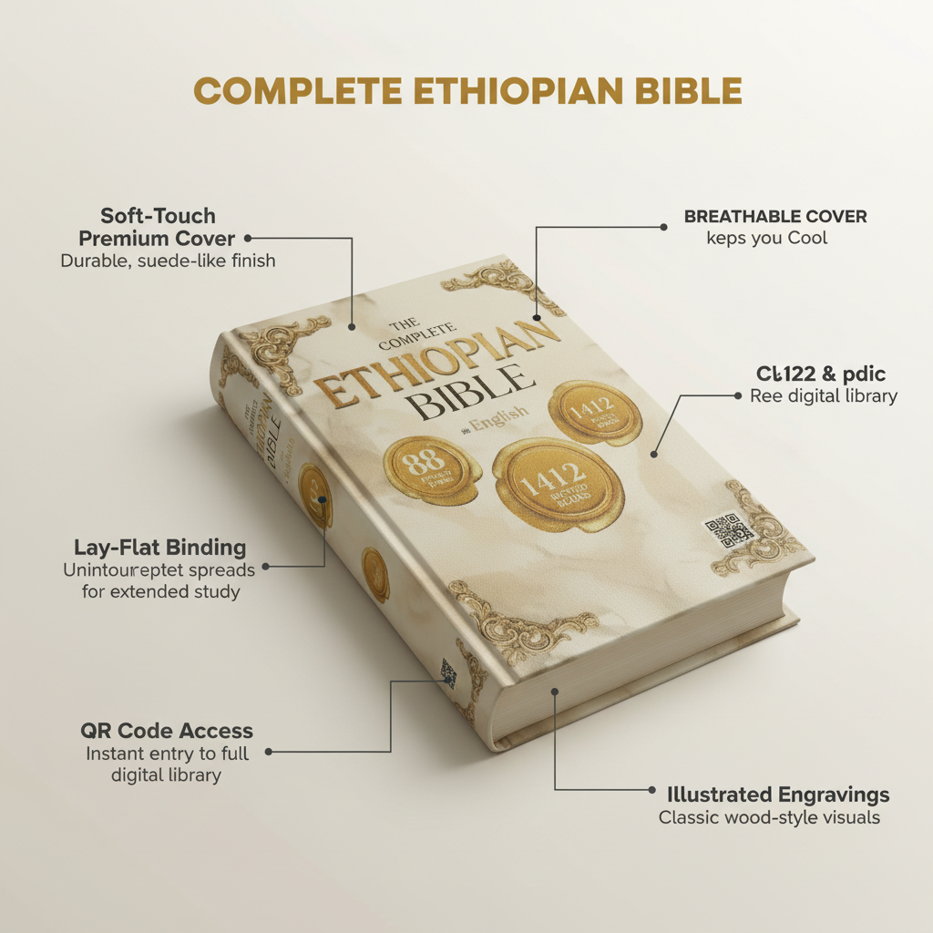 The Complete Ethiopian Bible contains all 88 books of the Ethiopian Orthodox canon, including rare apocrypha like 1 Enoch and Jubilees.